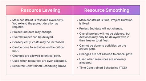 Time and Resource Constrained Projects. Resource smoothing This is used when time constraints are the biggest factor blocking production. In order to complete the project with a limited amount of resources you lengthen the project schedule.